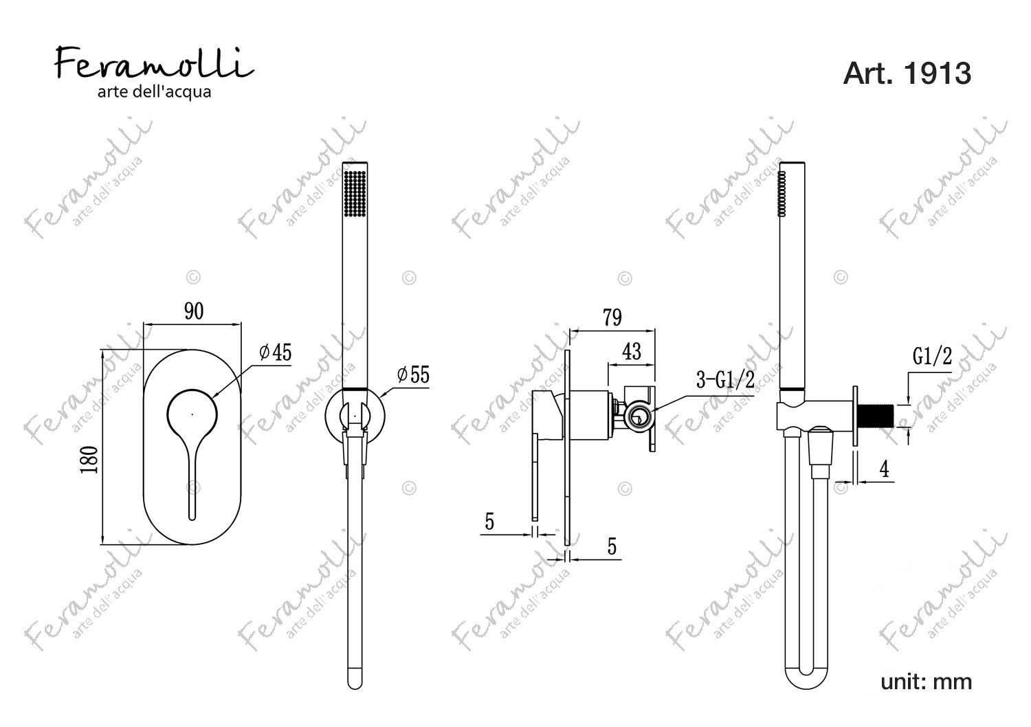 Feramolli OS1913 Ensemble de douche pour 2 trous: