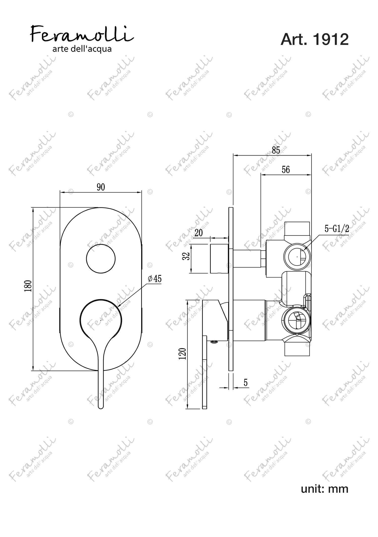 Feramolli OS1912 Robinet mural 2 voies pour baignoire et douche: