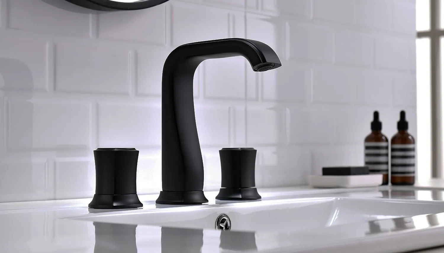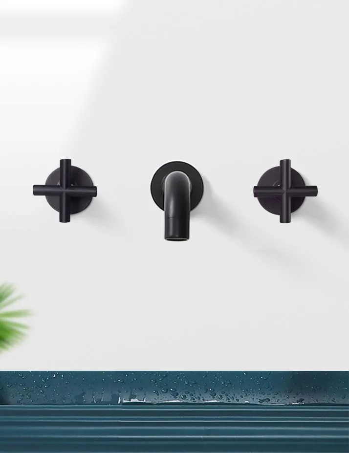 Un'elegante gamma di sanitari dal design geometrico laconico nei toni del nero, dell'oro e del cromo.