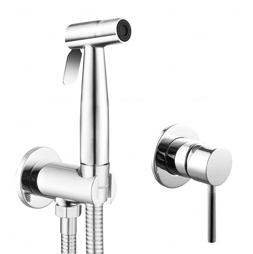 Conexión de manguera montada en la pared con soporte de ducha de mano, conexiones de 3/8" x 3/8", cromo brillante, latón