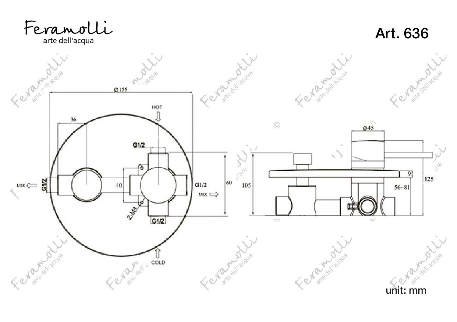 Feramolli CL636 concealed single lever mixer bath / shower: