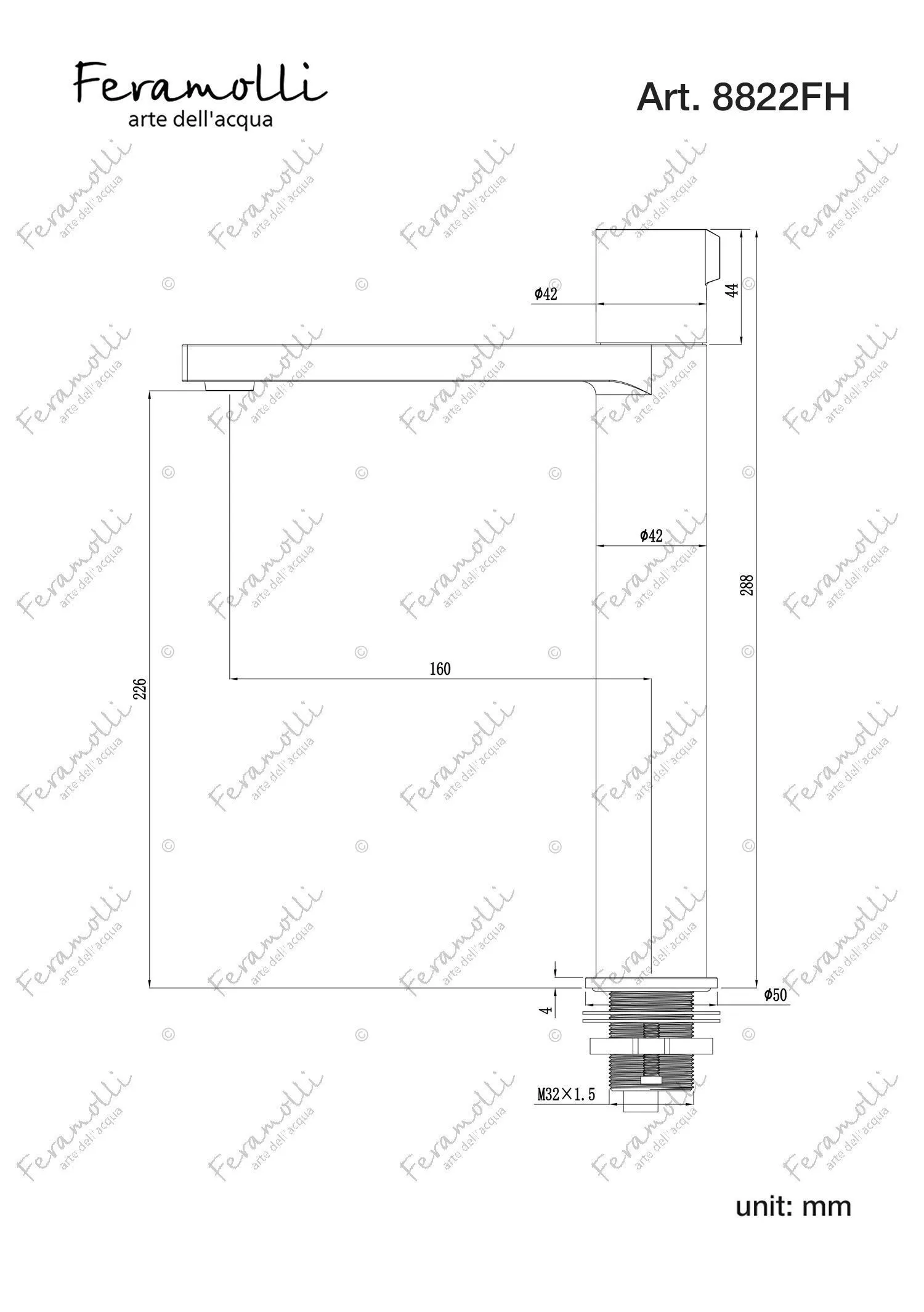 Feramolli NS8822H Tall mixer for freestanding sink: