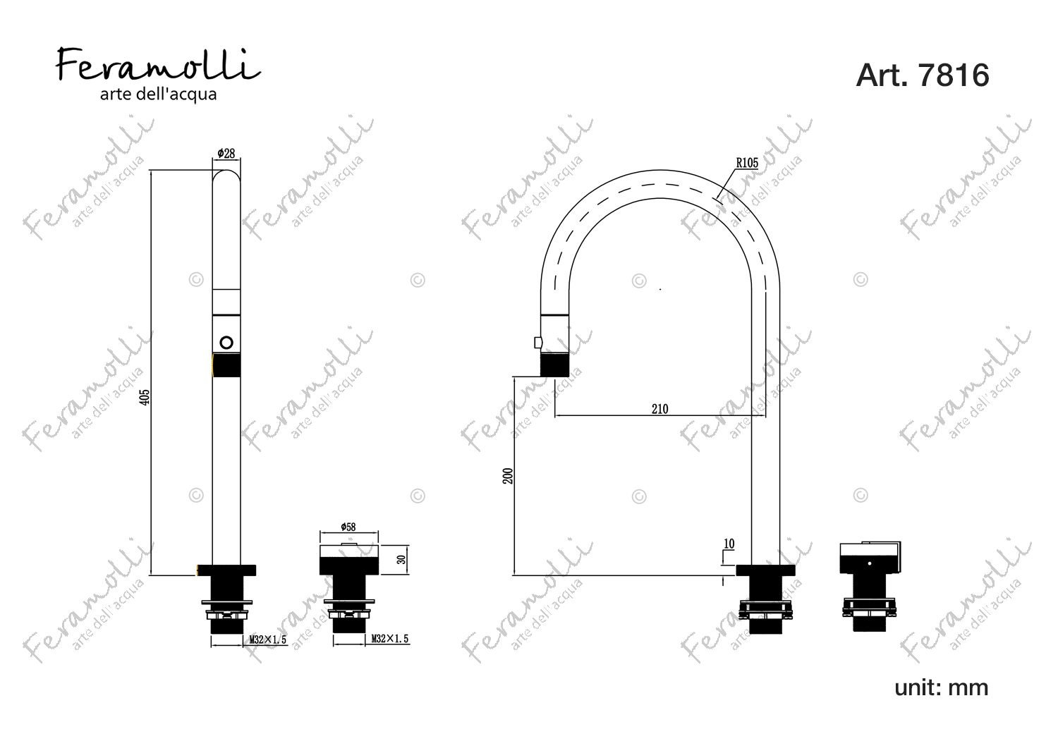 Kitchen mixer built into the countertop Feramolli NO7816, black