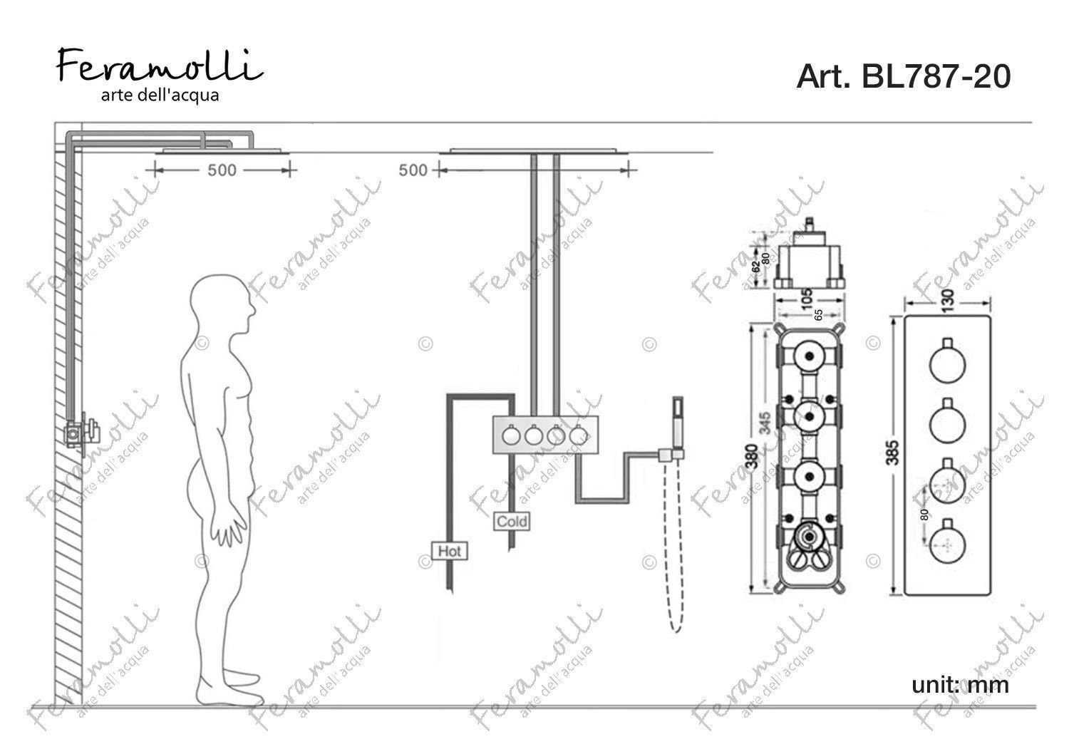 2 in1 thermostatic shower kit with 2 function 500 mm top shower head BL787-20