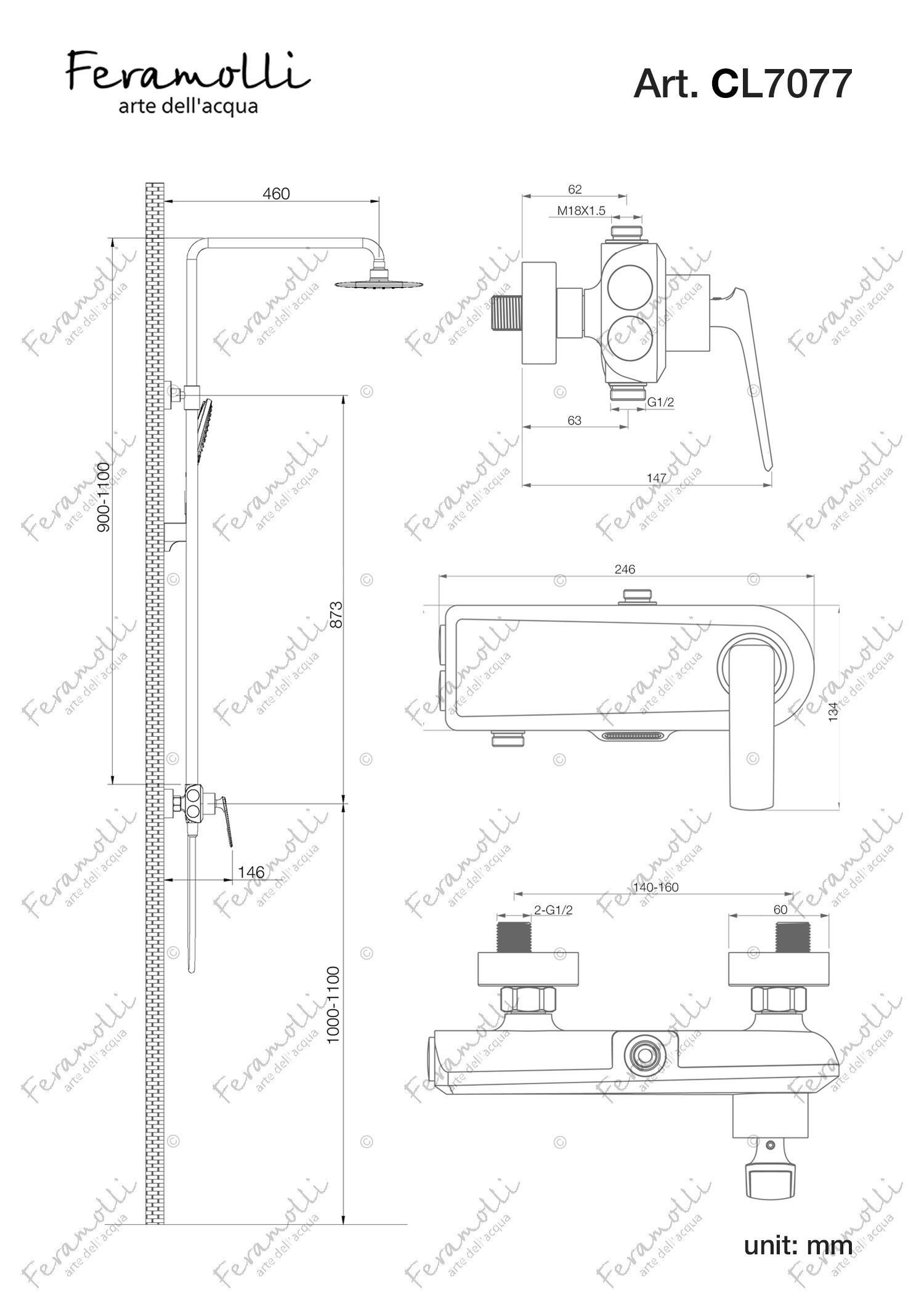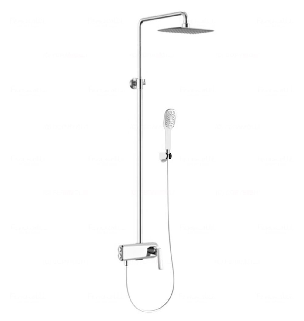 Feramolli CL7077 3-in-1 Shower column with rectangular overhead shower, limescale protection and single lever mixer, Glossy chrome.