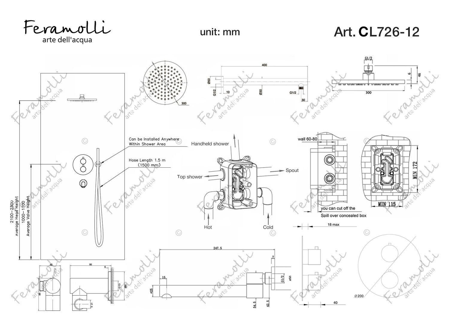 3 in 1 thermostatic shower kit Feramolli CL726-12 (Shower head: 300 mm)