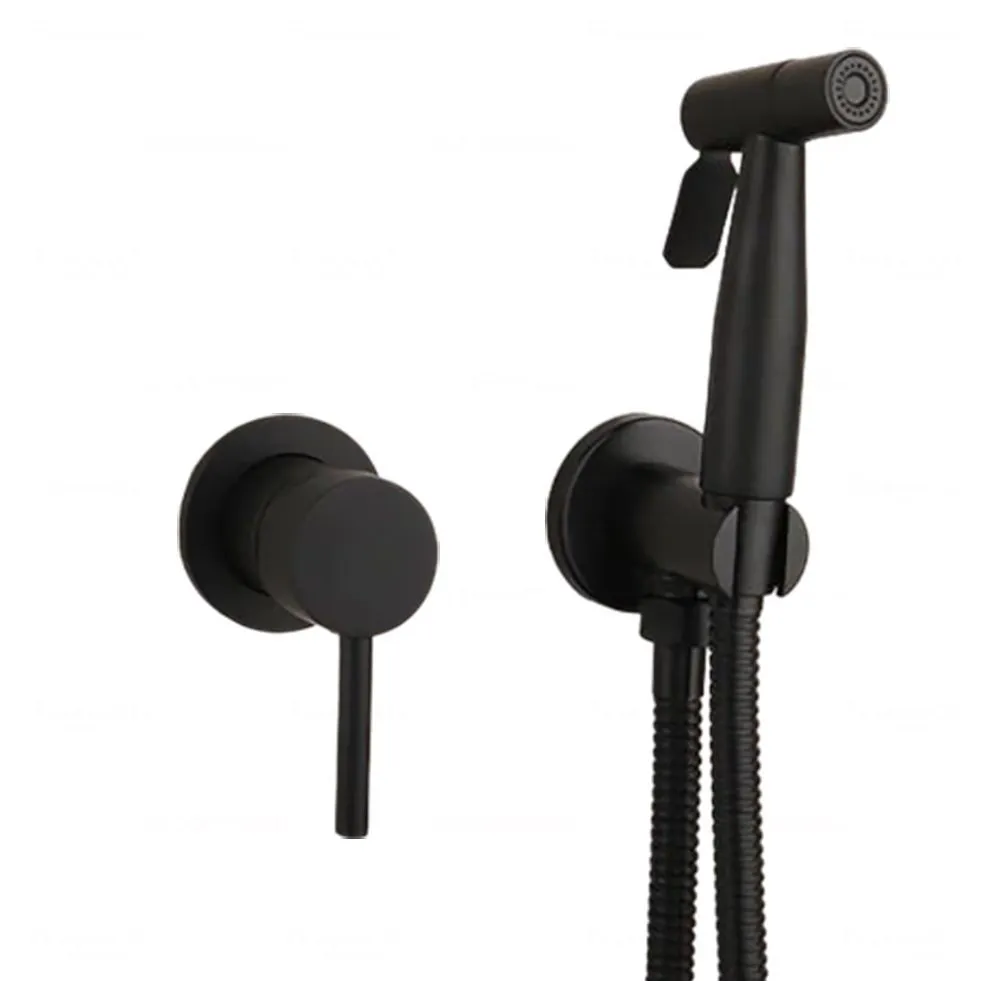 Hygienic hand shower with control button, black stainless steel
