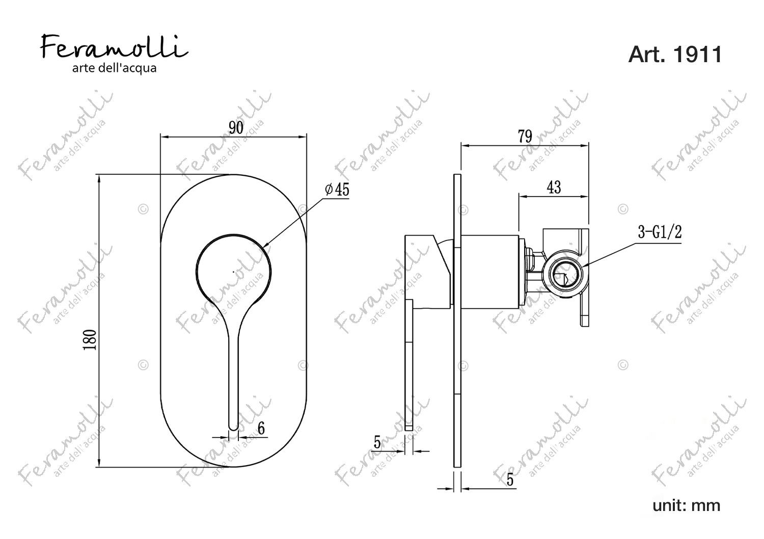 Single lever wall-mounted mixer Feramolli Inox OS1911, gold