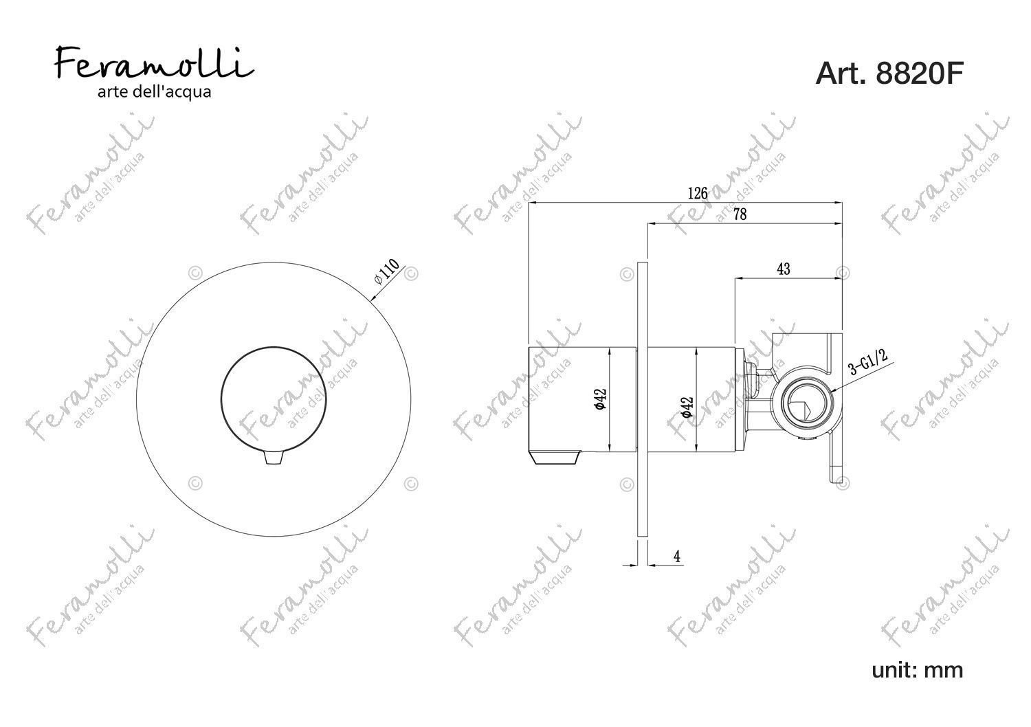 Single lever wall-mounted mixer Feramolli OS8820, gold