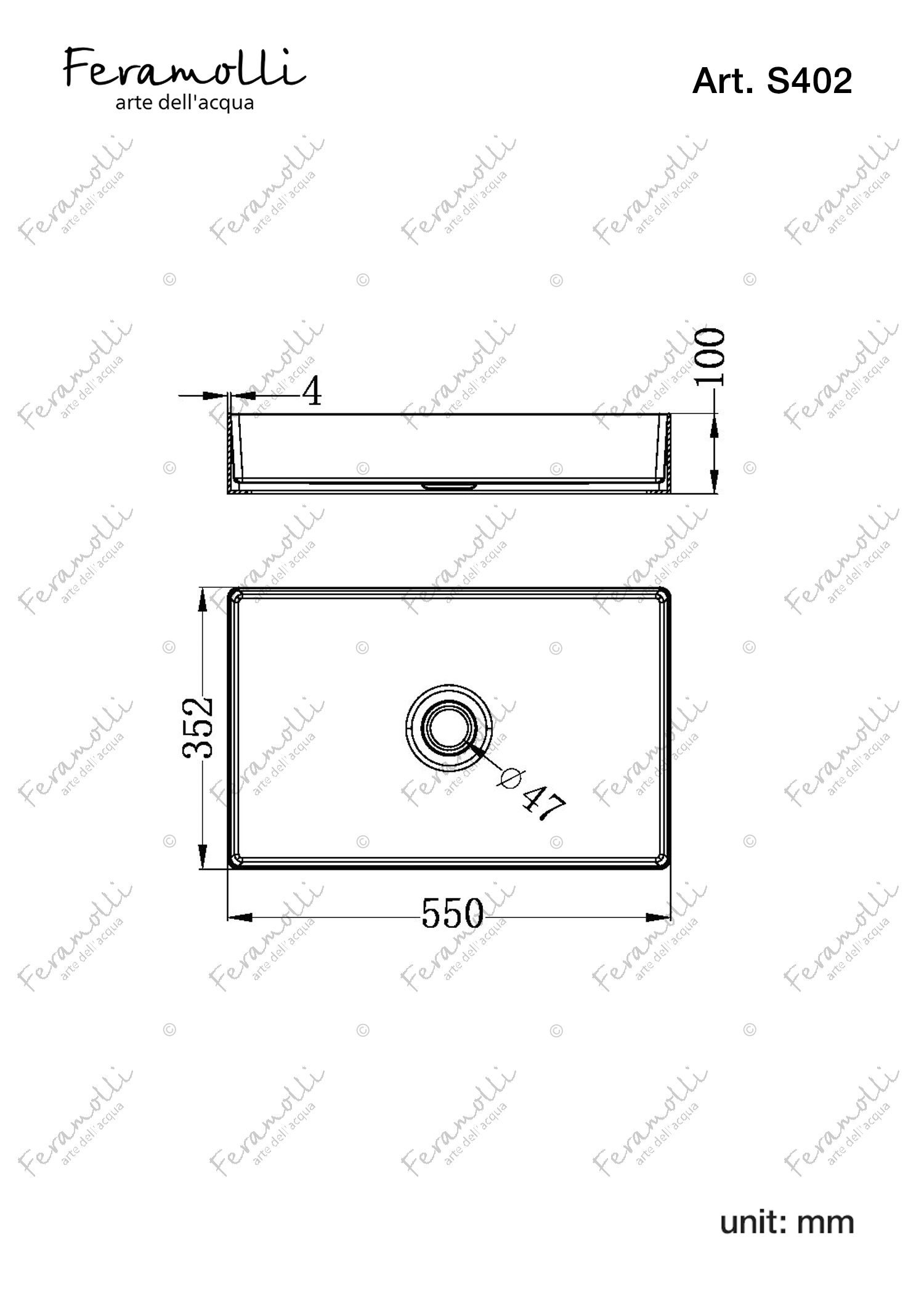 Évier rectangulaire en acier inoxydable 550mm Feramolli S402GL, or