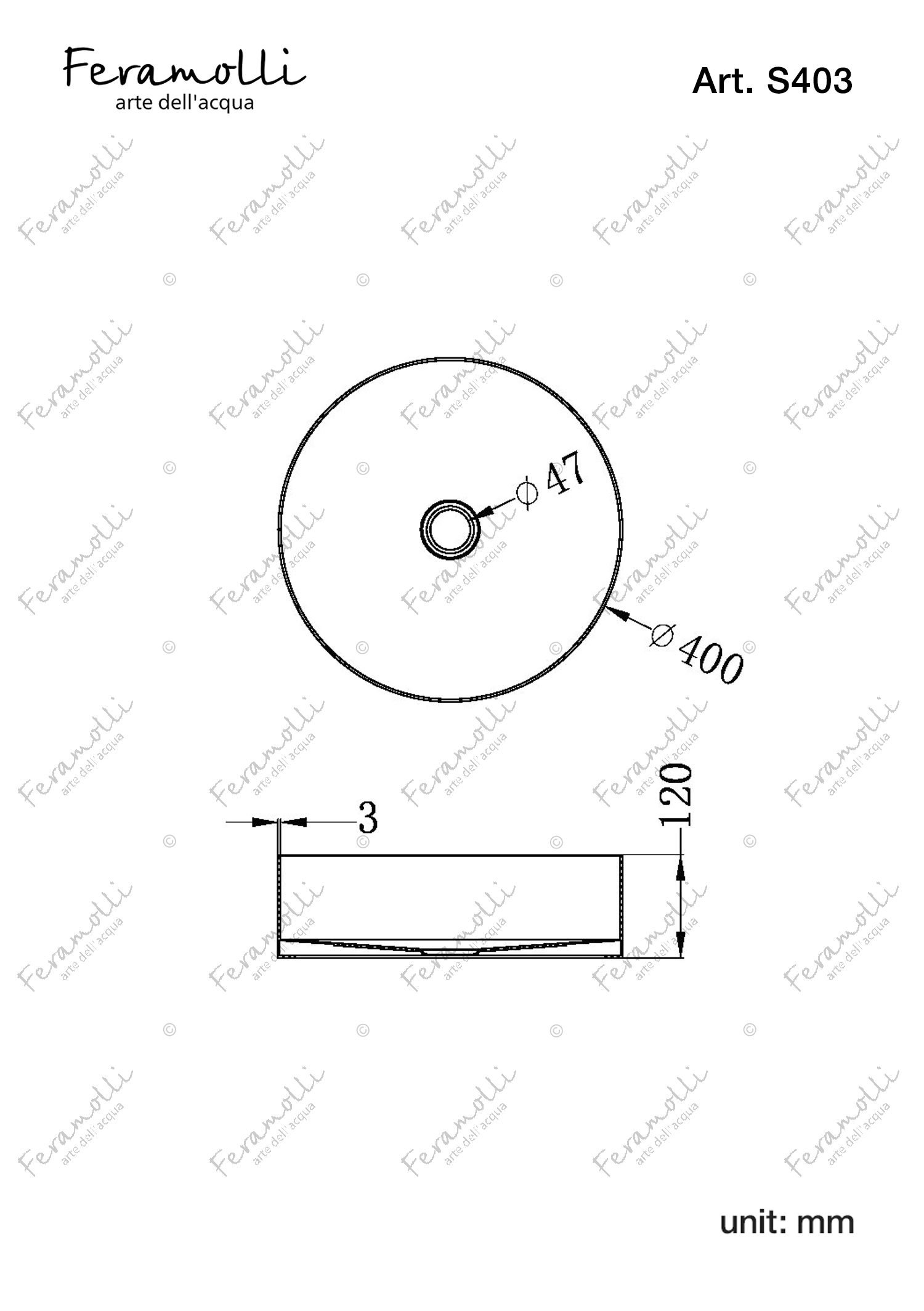 Évier rond en acier inoxydable 400mm Feramolli S403GB, graphite