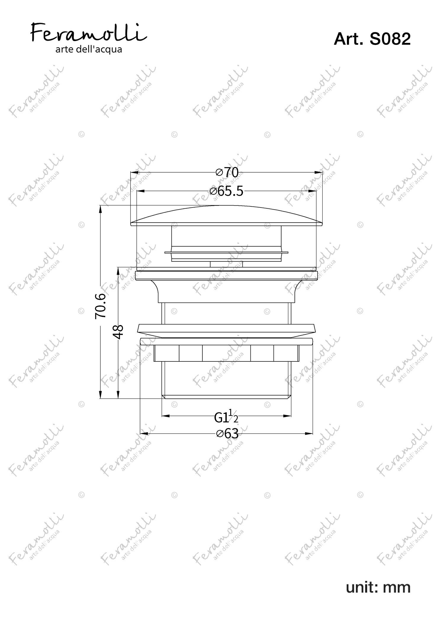 Vidage escamotable pour baignoire et évier sans trop-plein Feramolli S082BB, cuivre