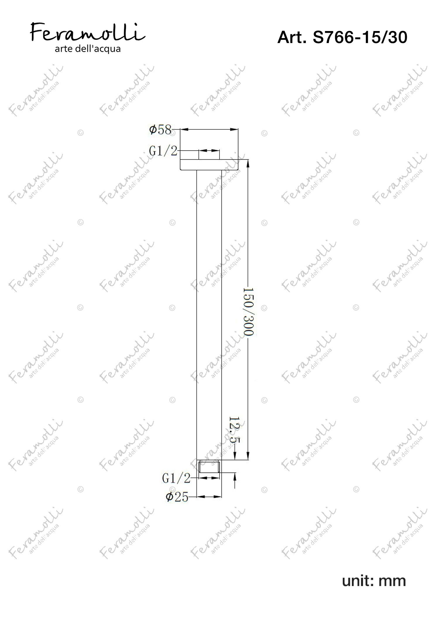 Bras de douche supérieur Feramolli S766-30GO: