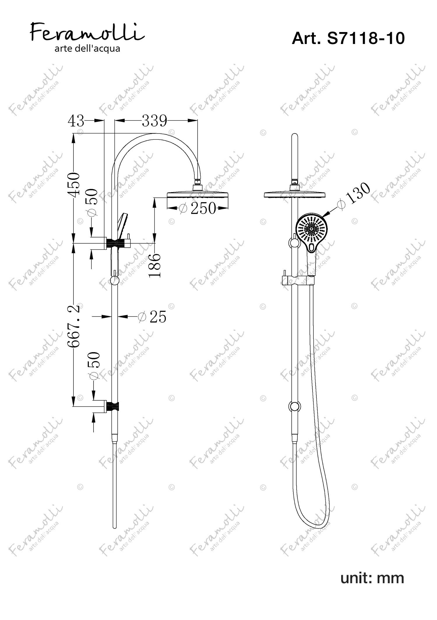 Colonne de douche de douche avec raccordement d'eau dissimulé G1/ 2, Feramolli S7118-10CN: