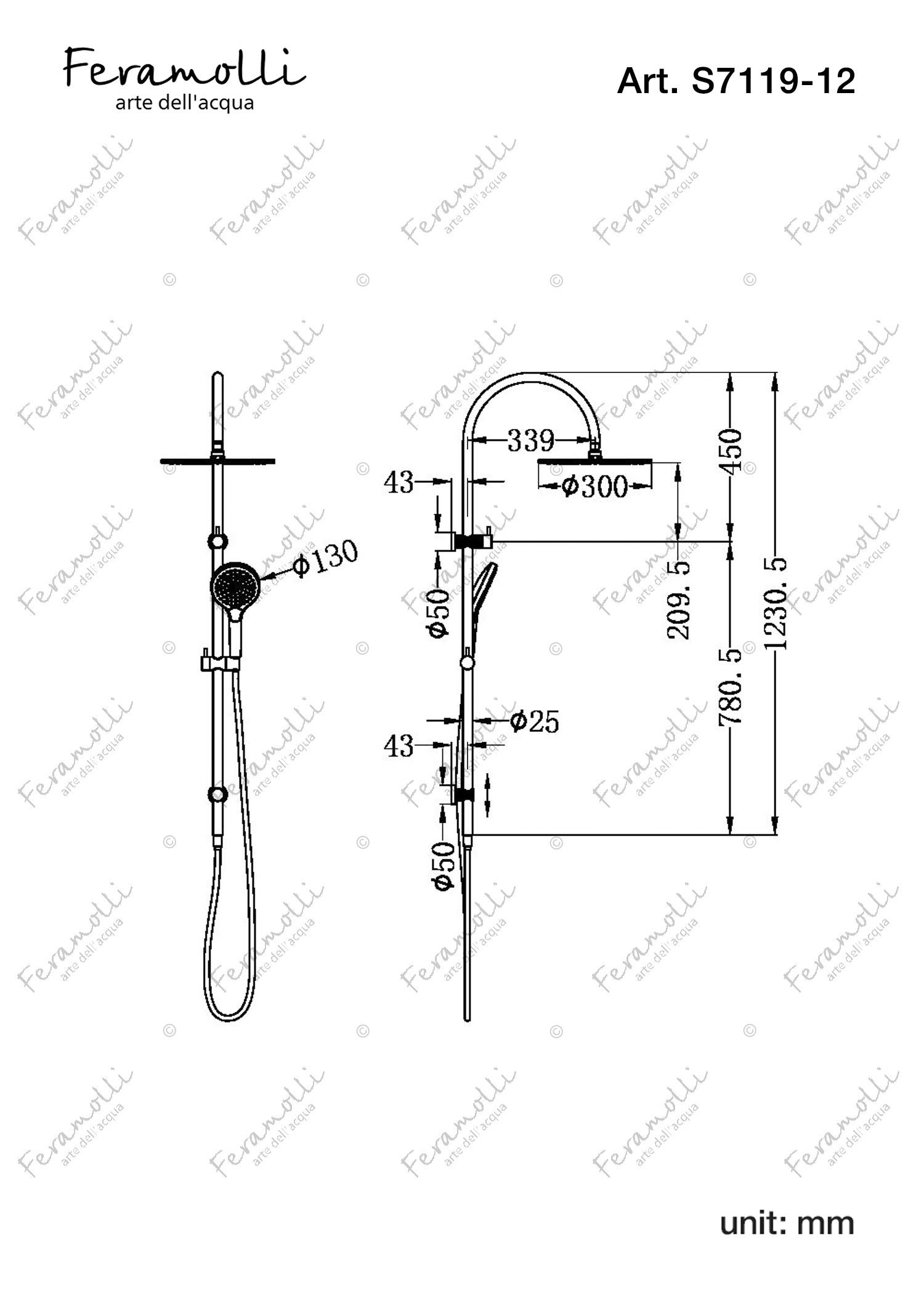 Colonne de douche de douche avec raccordement d'eau dissimulé G1/ 2, Feramolli S7119-12CN: