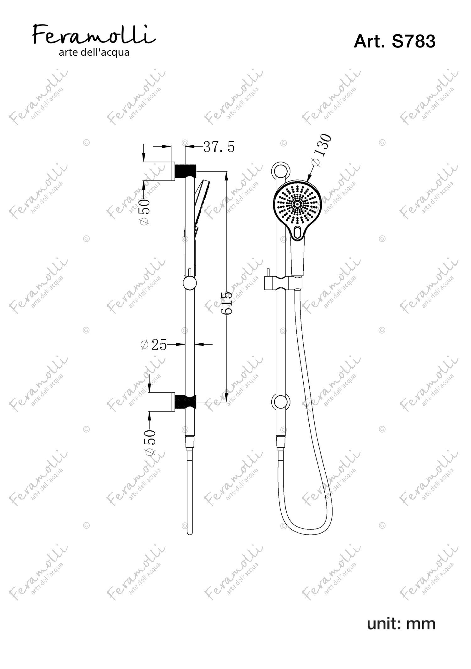 Attention! Pour que la tringle de douche fonctionne, il est nécessaire de l'équiper d'un mitigeur mural pour 1 jet. Produits: S605CN, S614CN, S615CN.
