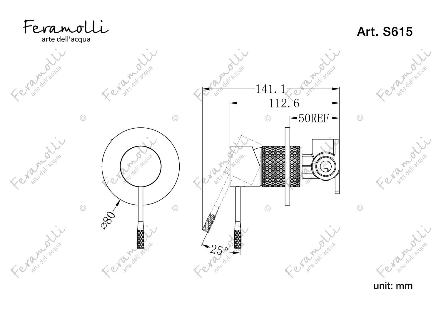 Mitigeur de douche mural pour 1 flux Feramolli S615GL:
