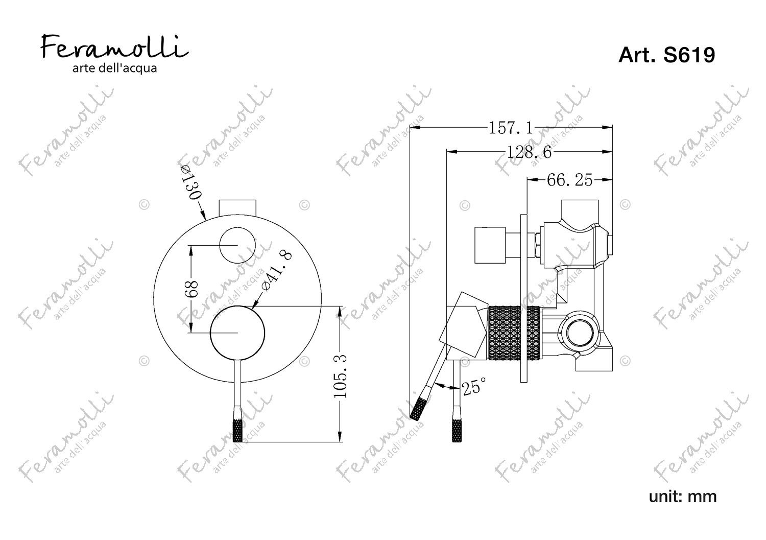 Mitigeur mural pour baignoire et douche pour 2 flux Feramolli S619GL: