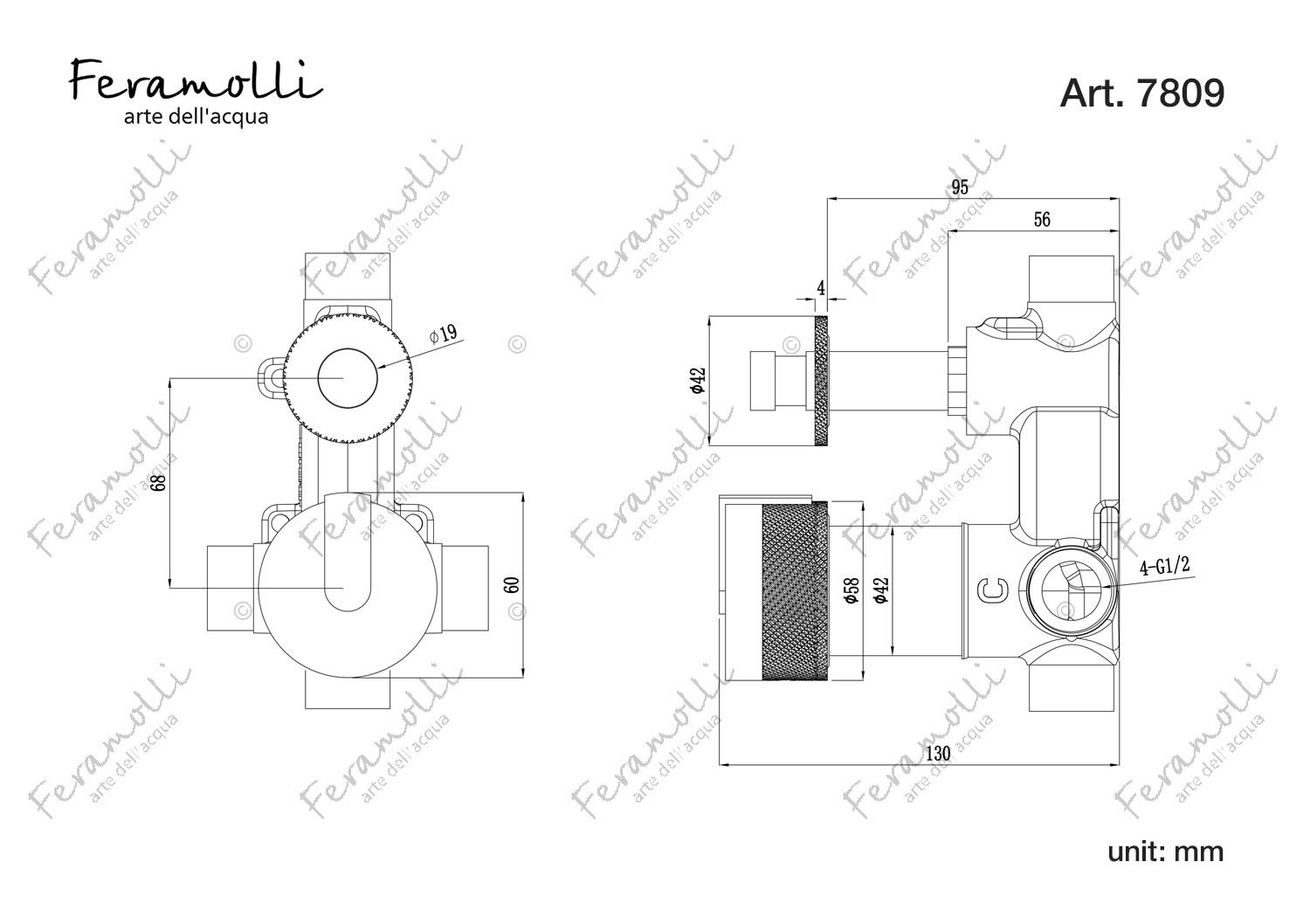 Robinet mural 2 flux pour baignoire et douche Feramolli C7809, chromé