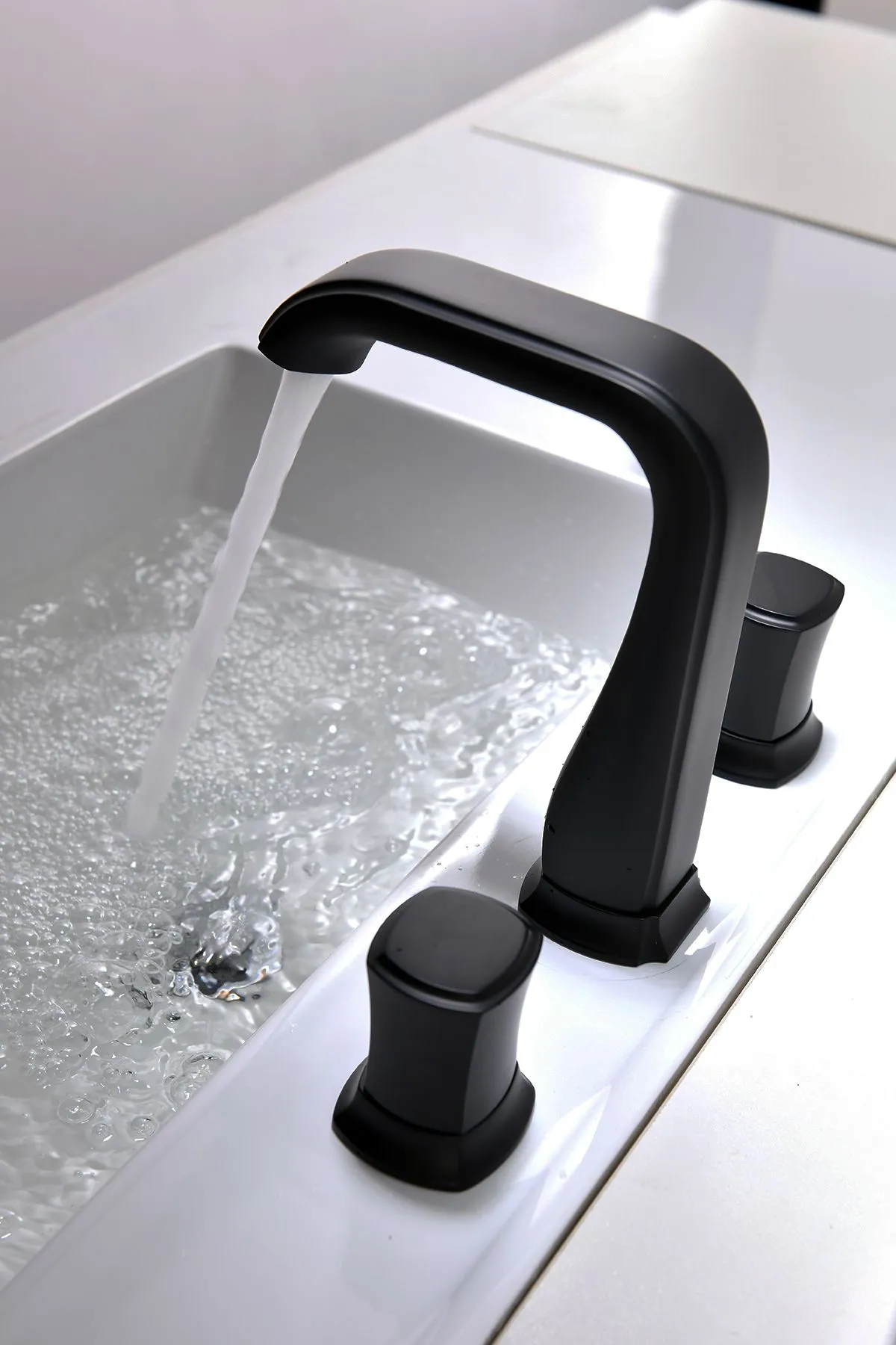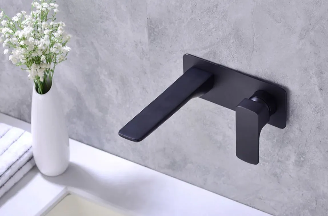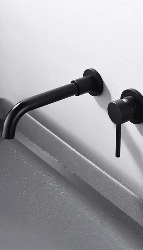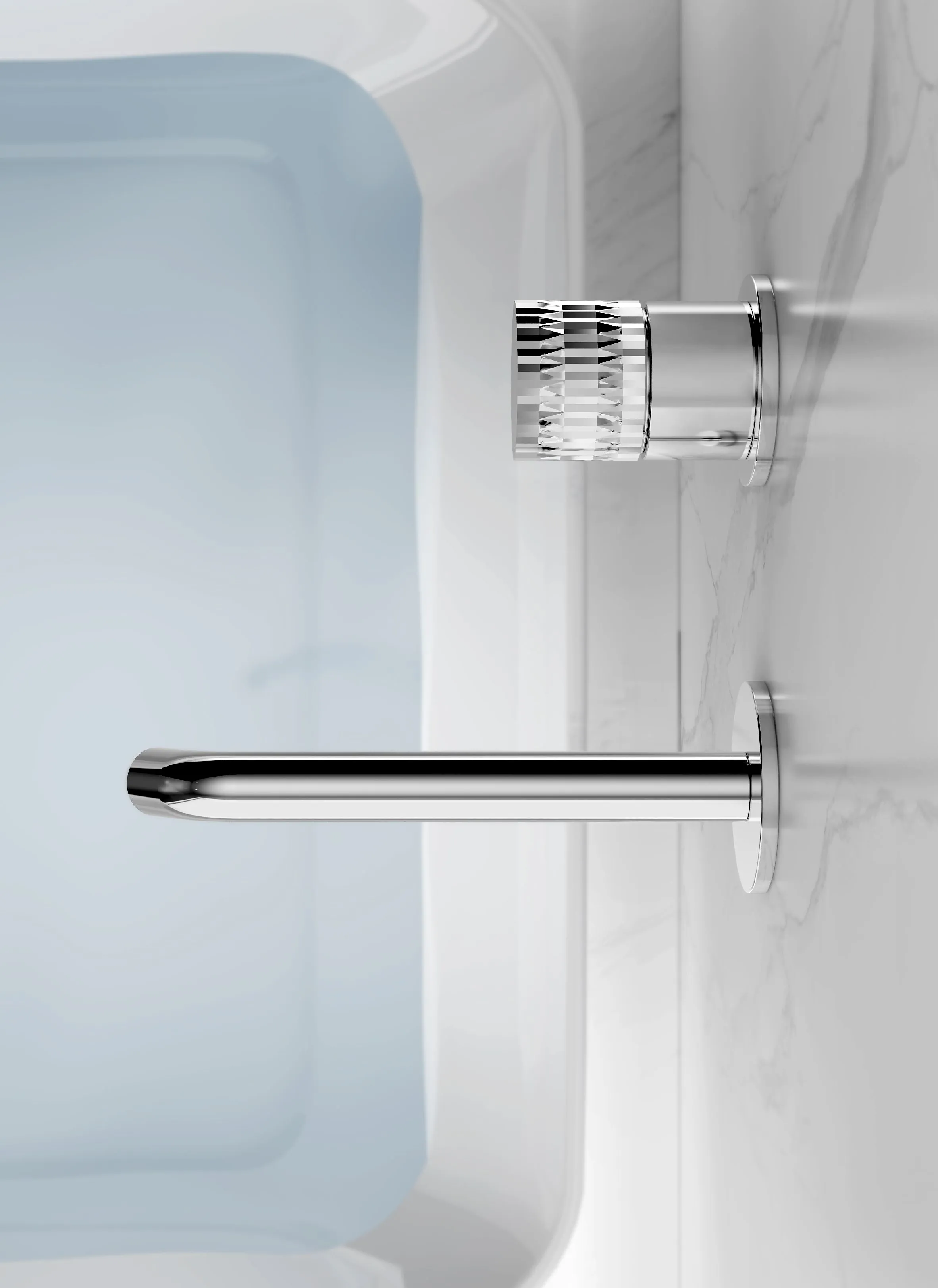 Un'elegante gamma di sanitari dal design geometrico laconico nei toni del nero, dell'oro e del cromo.
