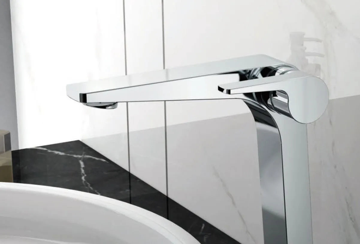 Eleganti combinazioni di texture marmo naturale e metallo freddo nella collezione Tanaro.